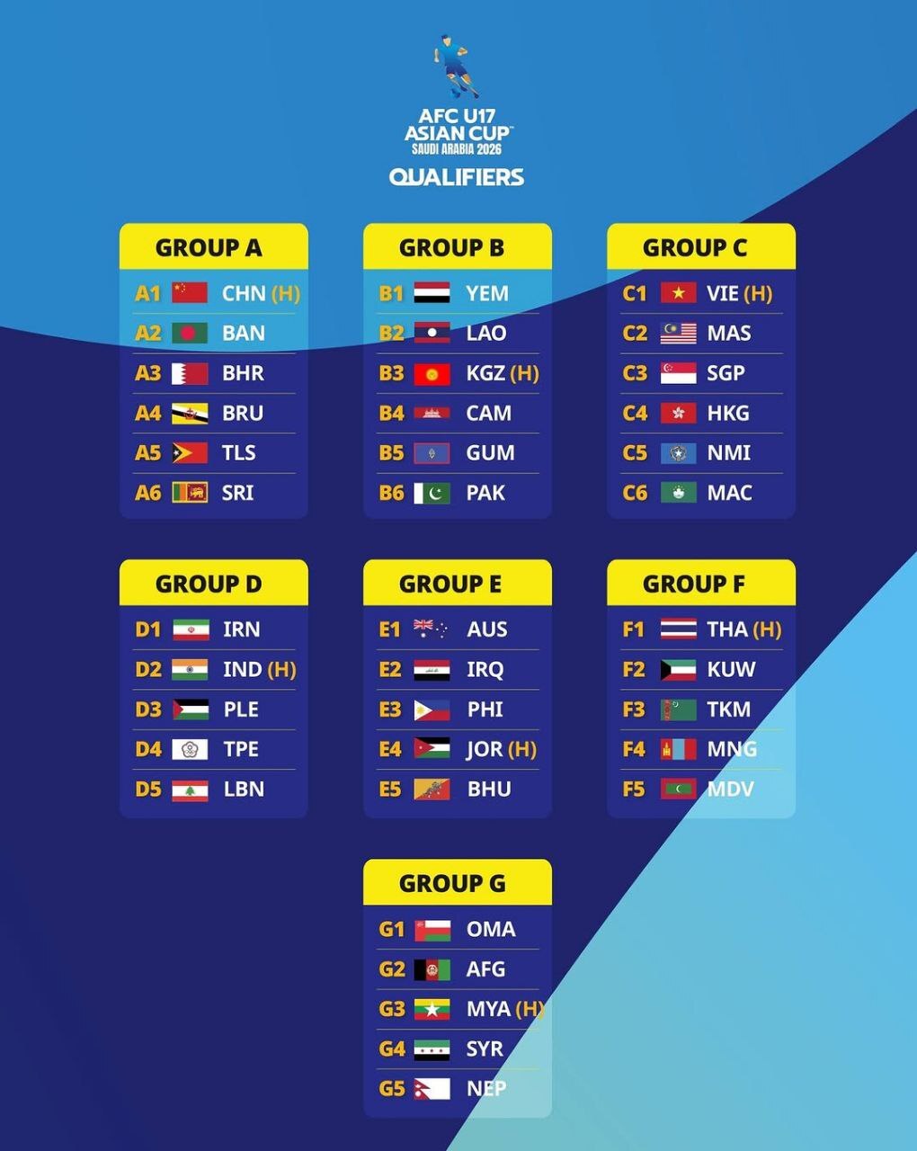 از این رو تیم فوتبال زیر ۱۷ سال ایران به عنوان یکی از تیمهای گلدان اول، در گروه D با تیمهای هند، فلسطین، چین تایپه و لبنان همگروه شد.